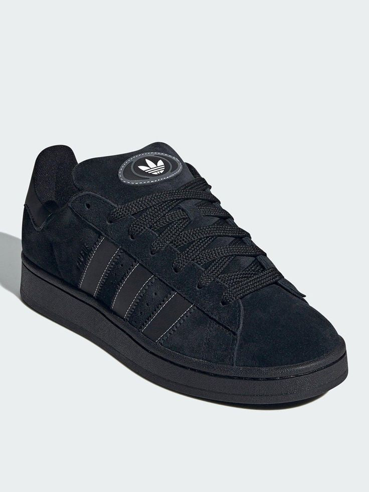 The Adidas Campus All Black is a sleek, minimalist sneaker that blends classic style with modern comfort. Featuring an all-black leather upper, the design is clean and versatile, making it suitable for various occasions. The shoe retains the iconic Campus silhouette, with a low-top profile and a padded collar for extra comfort. A textured suede toe cap and the signature white Adidas branding on the side add subtle contrast, while the rubber outsole provides durable traction. This model offers a timeless aesthetic, perfect for casual wear or street style.