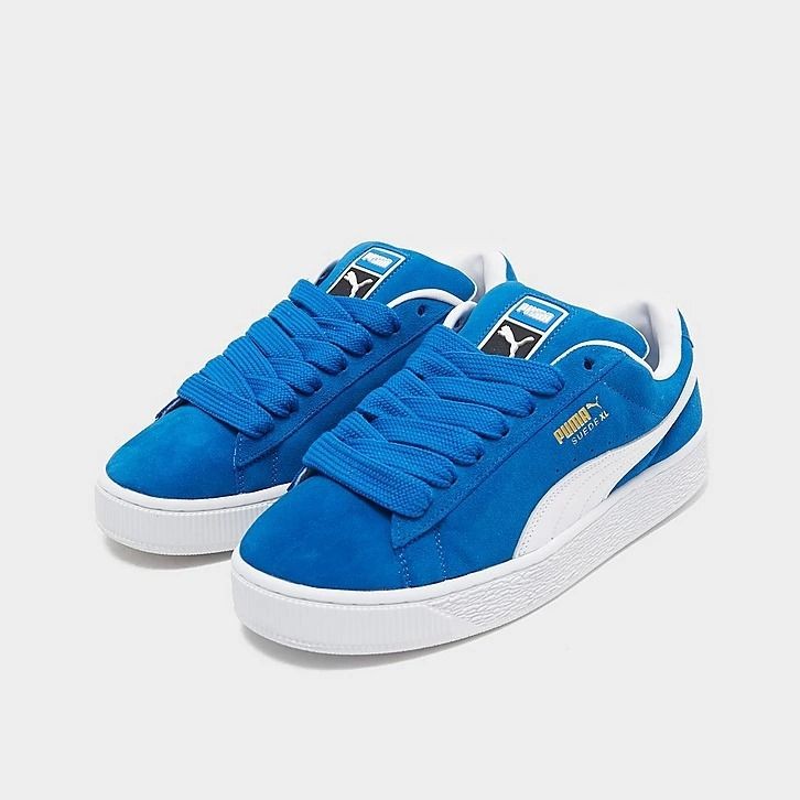 The Puma Suede XL Royal Blue is a stylish and classic sneaker that combines Puma's heritage with a modern twist. Made from premium suede, the shoe features a rich royal blue color, giving it a bold yet timeless look. The design maintains the iconic Puma Suede silhouette, known for its sleek and versatile appeal, with a low-top profile and smooth lines. It typically includes the signature Puma Formstrip on the side, along with a cushioned midsole for comfort and durability. The royal blue hue adds a vibrant touch, making it an eye-catching choice for casual or streetwear outfits. It’s a go-to sneaker for anyone looking for both comfort and a standout design.
