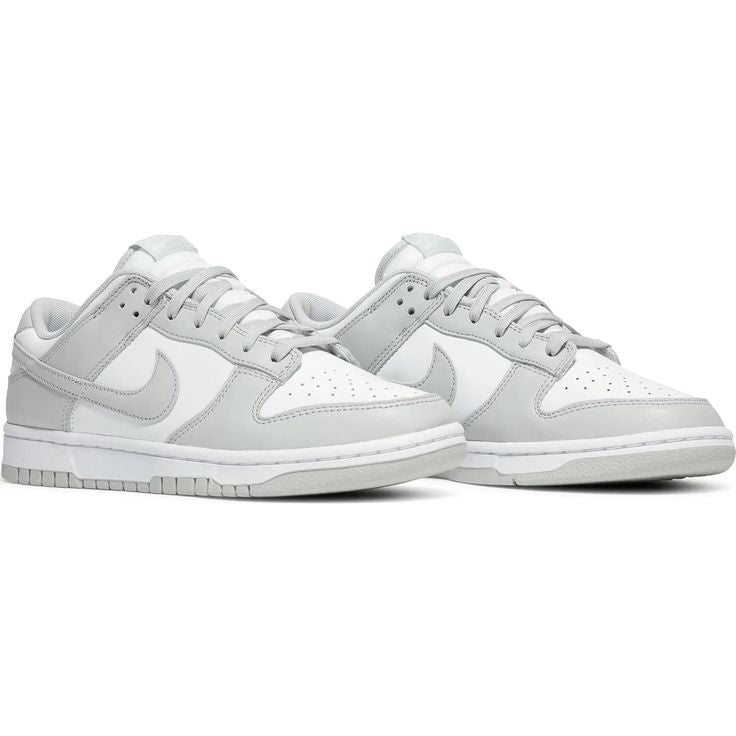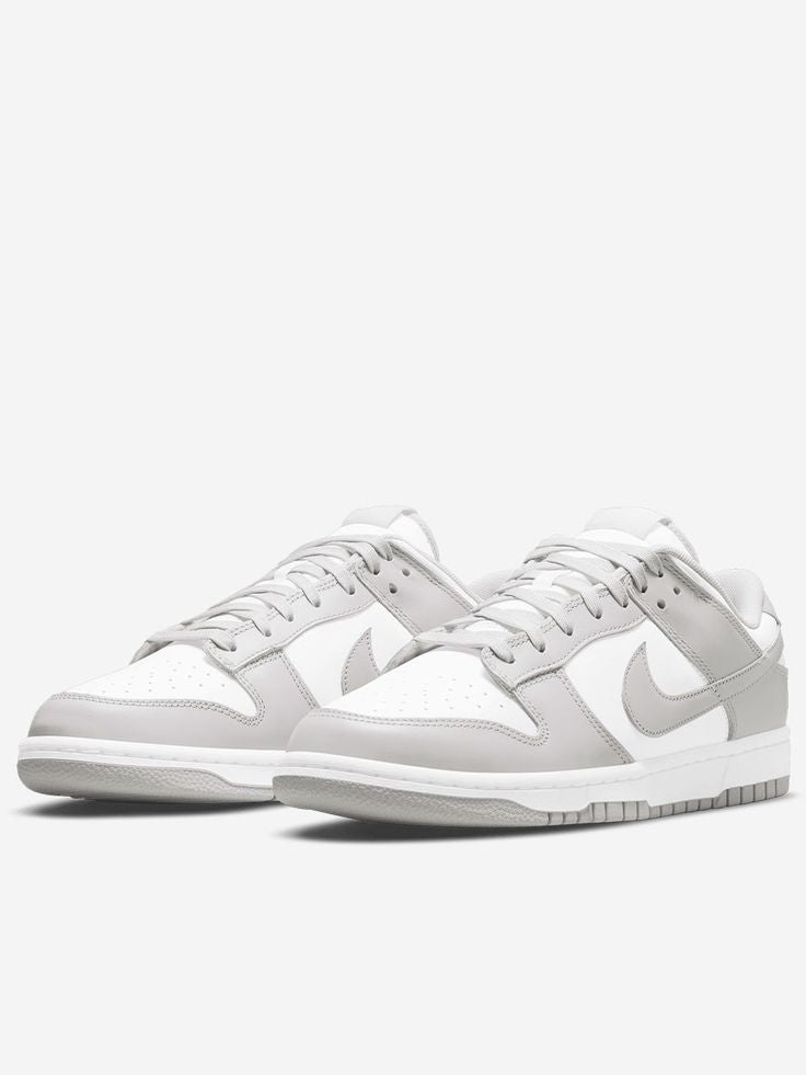 The Nike Dunk Low "Grey Fog" is a stylish and minimalist version of the classic Dunk silhouette. It features a sleek, two-tone colorway with "Grey Fog" and white accents. The upper is constructed with soft suede and leather, with grey hues covering most of the shoe, while the white leather on the toe box and mid-panel adds contrast. The shoe also includes a white midsole and a grey outsole, creating a clean and balanced look. With its neutral palette, the Grey Fog edition offers versatility, making it a popular choice for everyday wear.