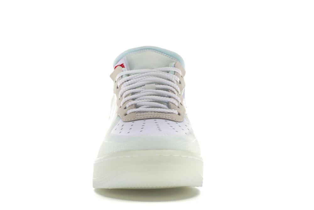 This Nike Air Force 1 Low was made in collaboration with Virgil Abloh's Off-White imprint. A part of the "Ghosting" Series, this pair comes in a clean white and sail colorway. Sporting a reconstructed translucent upper, featuring a semi-revealing material to tie-in with the theme. Various materials are found throughout, as well as a red zip-tie and the words "Shoelaces" on the laces and "Air" on the translucent sole. Their release date was November 1st, 2017 where they were available alongside the rest of the Off-White x Nike "Ghosting" Collection.