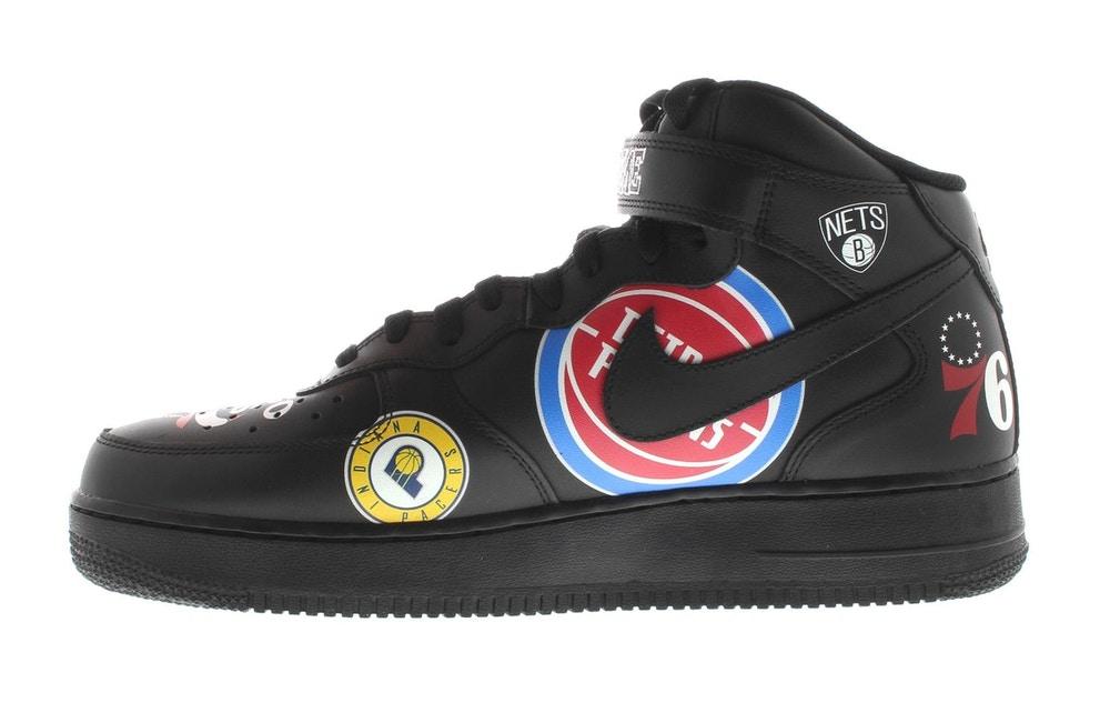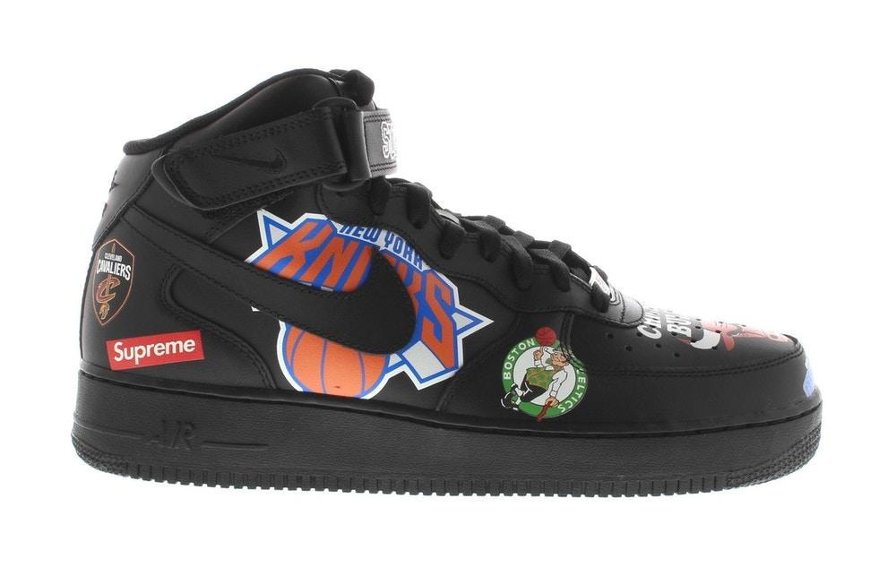 If you ever wanted to wear the equivalent of a #LeaguePassAlert on your feet, the Air Force 1 Mid Supreme NBA sneakers are finally here to answer your prayers. Supreme’s much anticipated collaboration with Nike and the NBA included these mid Air Force 1s in a white and black colorway. The mid-top shoes feature a leather upper and are highlighted with various NBA team emblems and Supreme branding throughout. The shoes dropped through Supreme’s website in March of 2018 and are sure to remain a popular item for fans of the best sport ever.